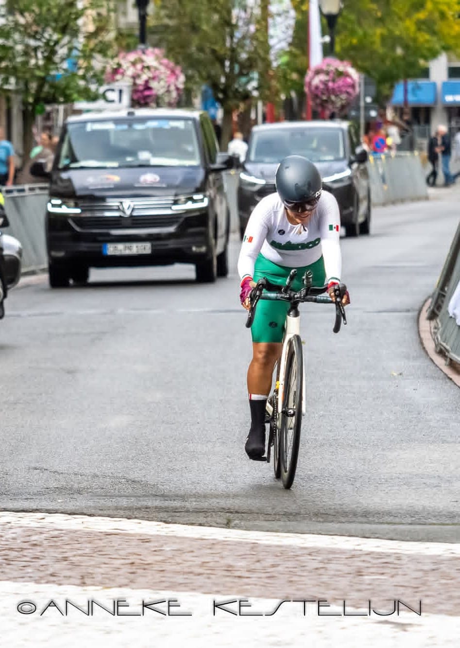 “El ciclismo de pista es de distancia corta y muy explosivo. Compites en una bicicleta de piñón fijo, sin frenos. La velocidad es máxima. La adrenalina es intensa. Quiero probar mis límites y competir en pista, aunque el acceso a entrenamiento específico de pista puede ser difícil desde Oaxaca, México.”
