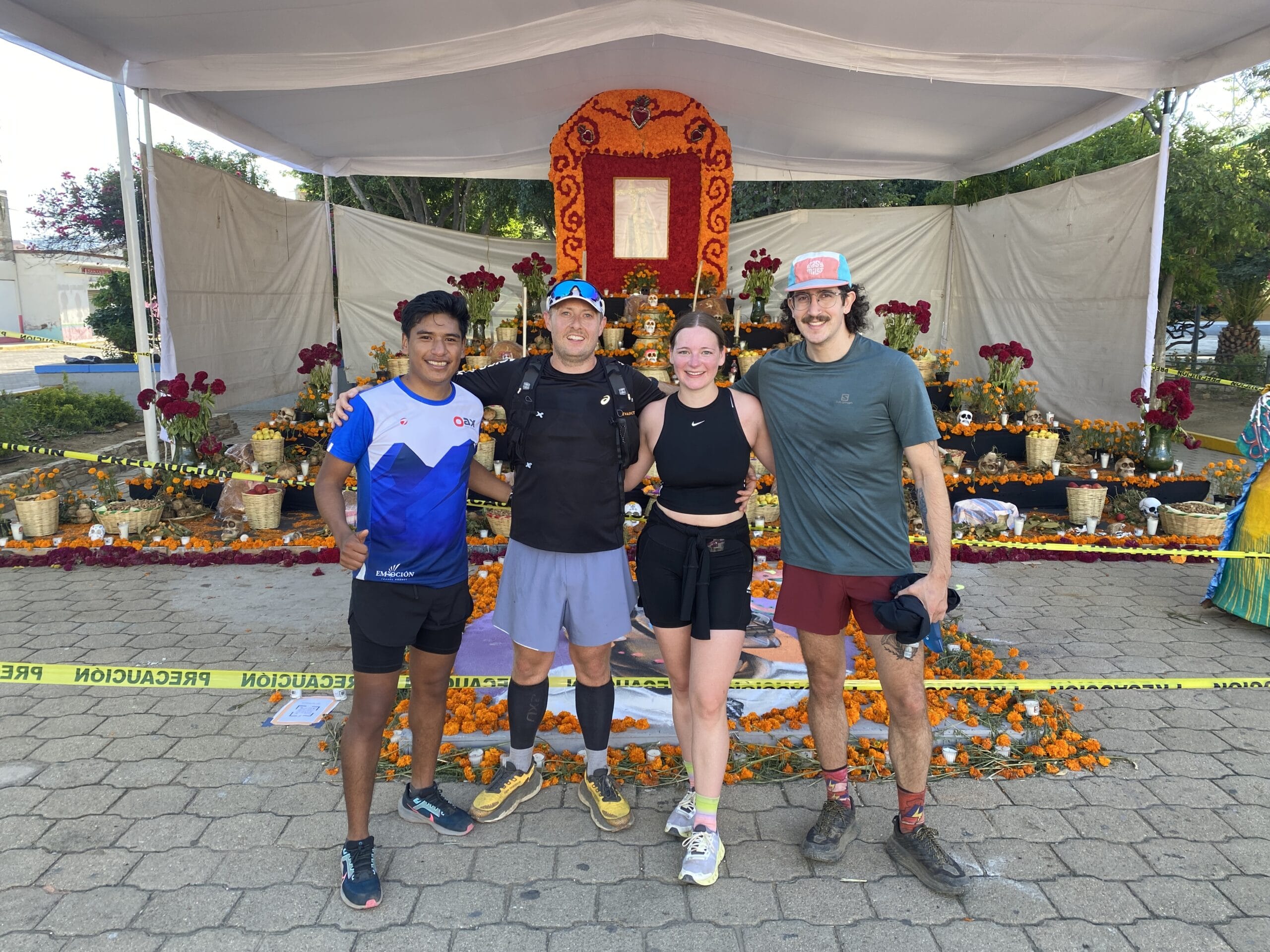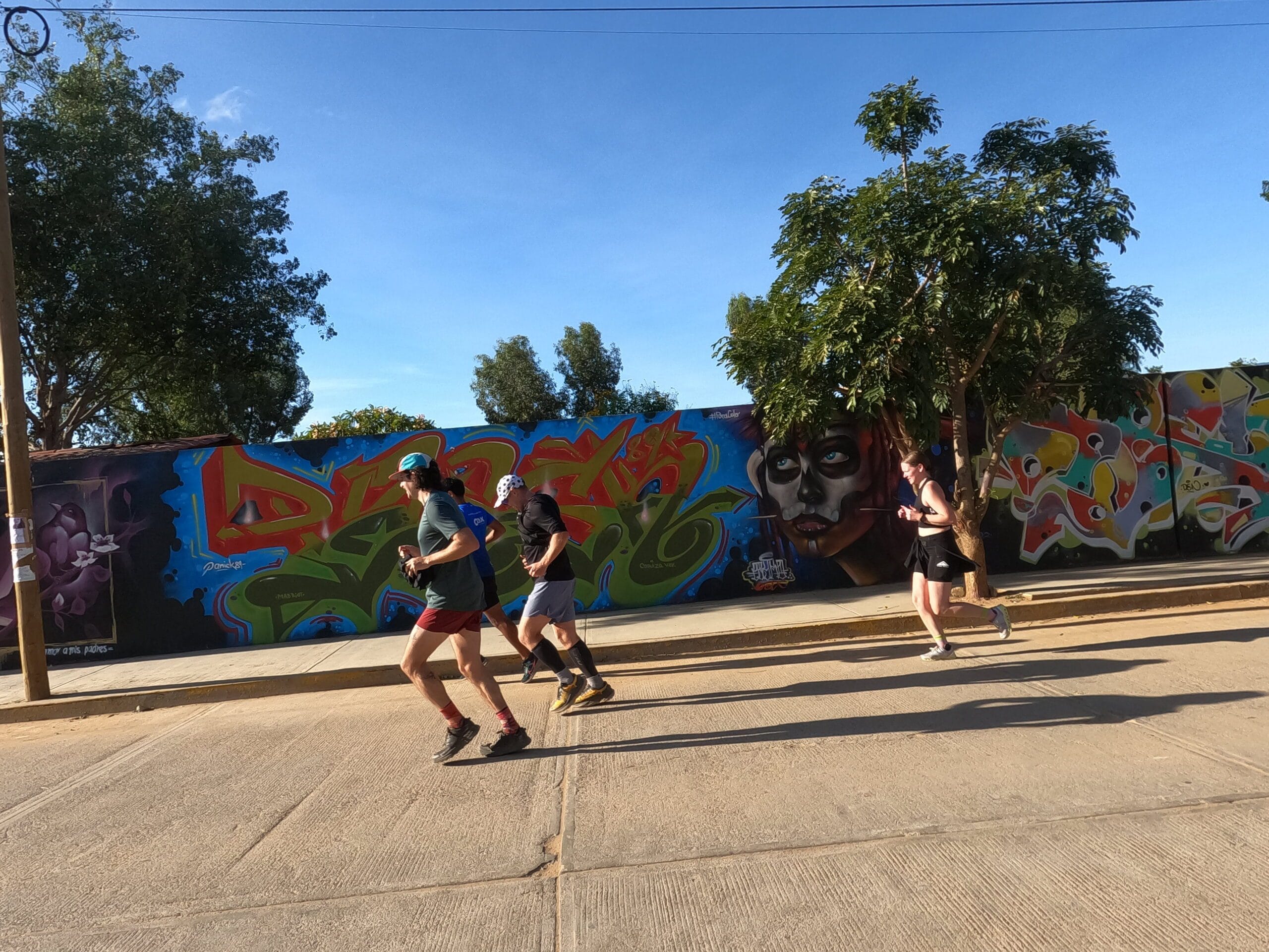 Our run started in the pre-dawn darkness of Xoxocotlan. The streets, silent and serene, were adorned with vibrant murals celebrating the Day of the Dead, setting a backdrop of rich cultural history for our journey.